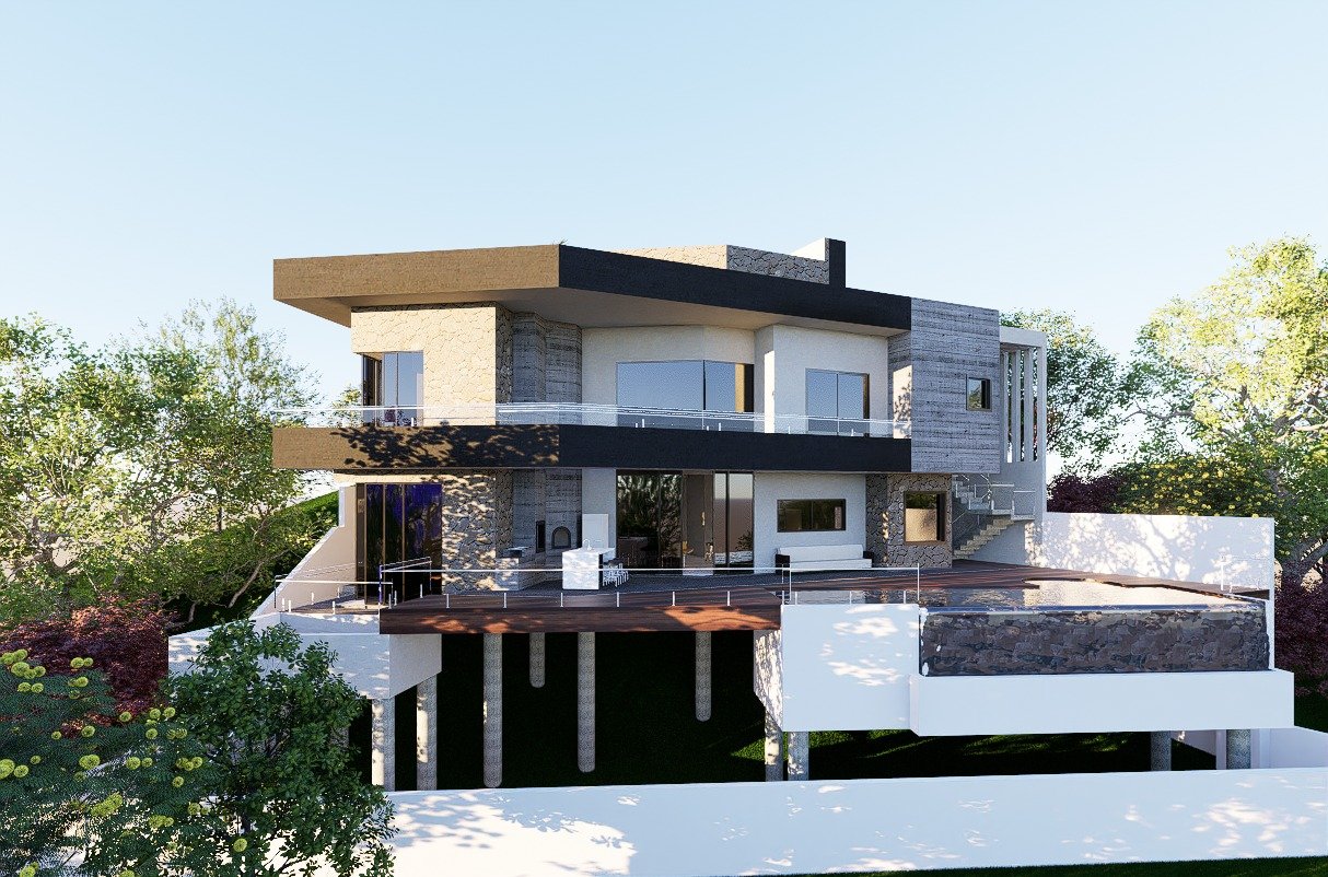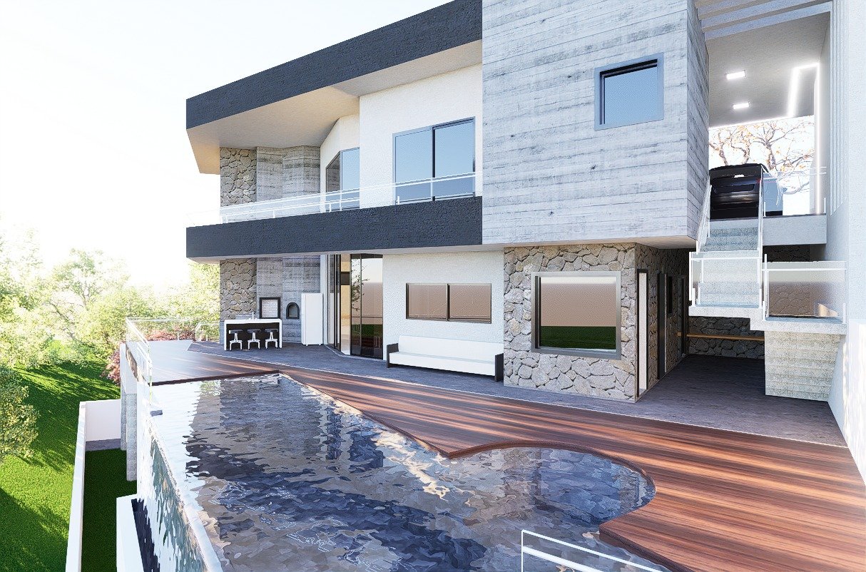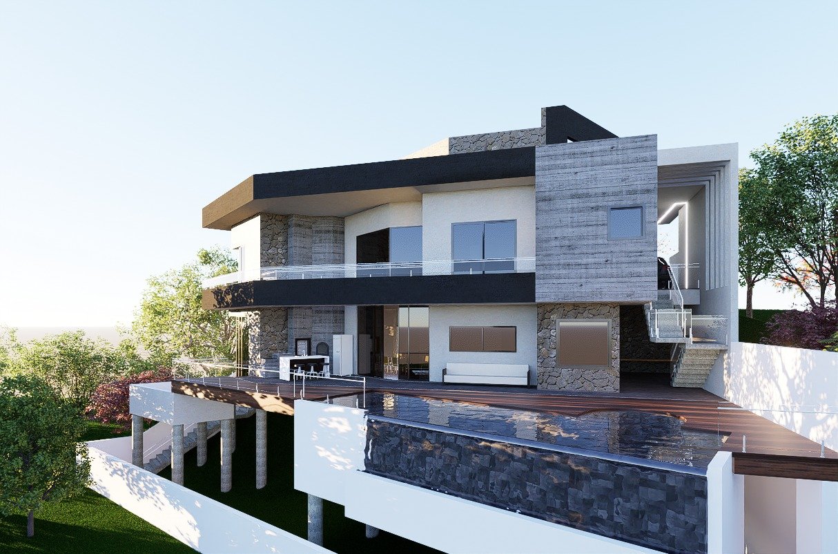 Suspensa sobre pilares e abraçada pela natureza, esta residência é um manifesto de arquitetura ousada e contemporânea. O uso da pedra, do concreto e das linhas marcantes cria uma identidade única, enquanto os grandes vãos envidraçados permitem que a paisagem faça parte de cada ambiente. Um lar que flutua entre a força da estrutura e a leveza do entorno.