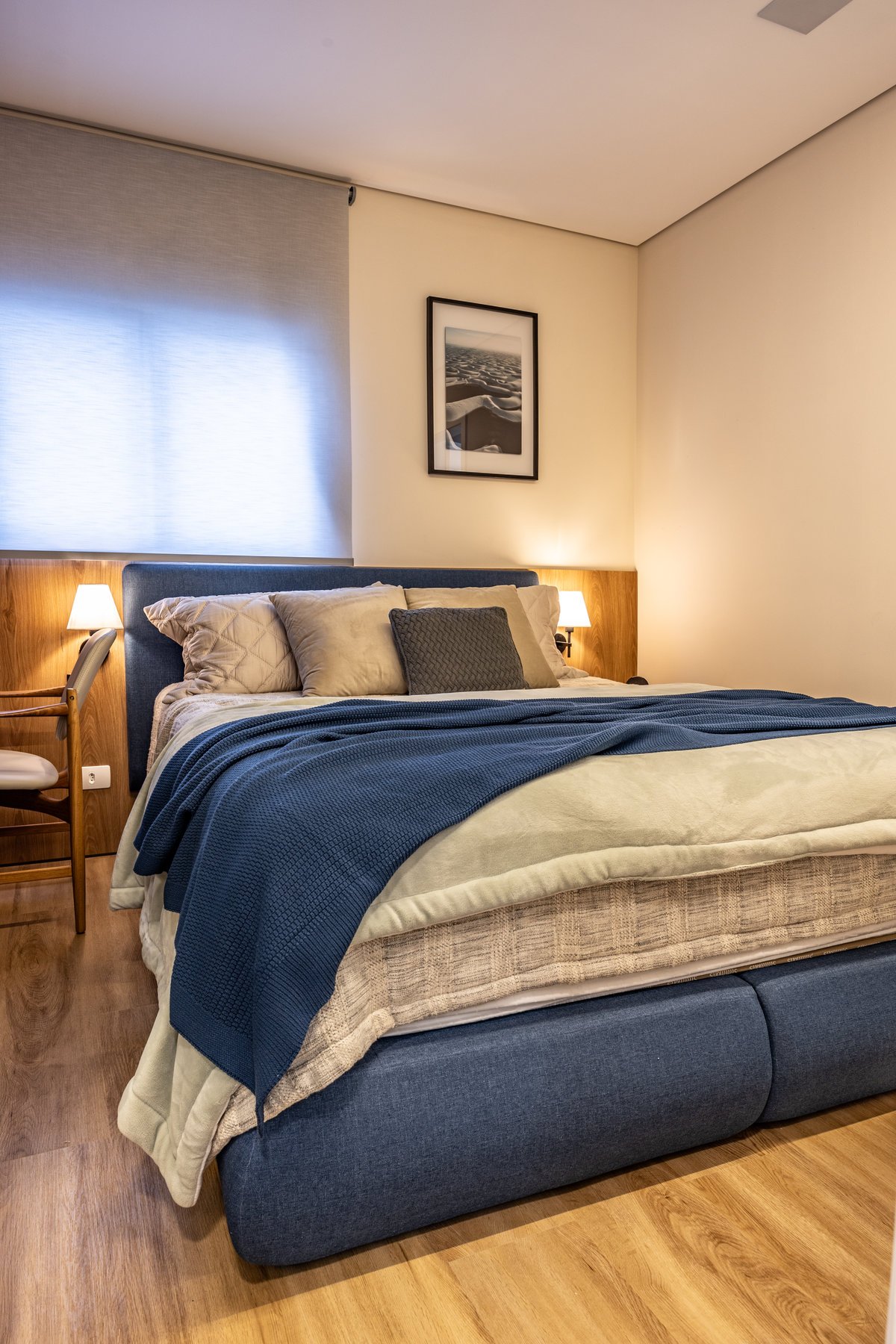 Este projeto foi pensado para traduzir o estilo de vida de um casal jovem: dinâmico, acolhedor e cheio de personalidade. A paleta neutra serve como base para destacar texturas e volumes, enquanto pontos de cor pontuais — como o mostarda da manta e os tons terrosos — trazem calor e identidade ao ambiente.